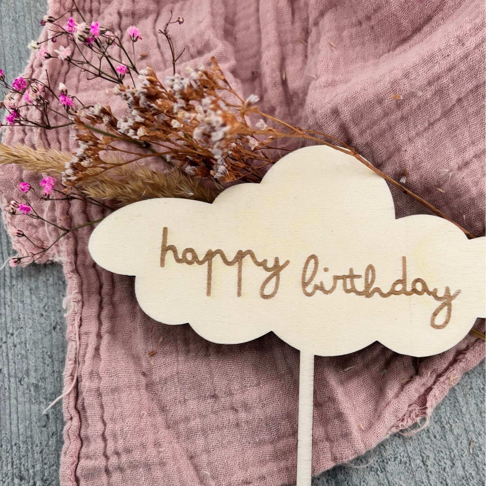 - Wolke mit Schriftzug "Happy Birthday"